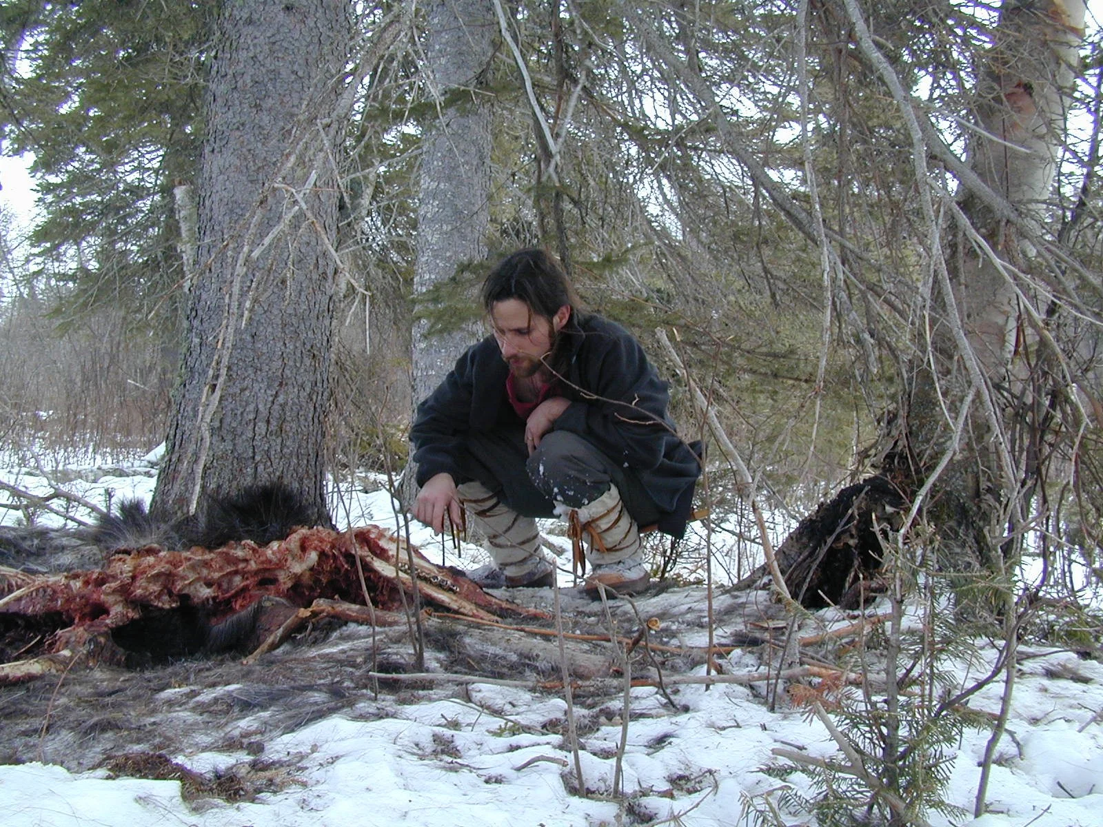Wolf researcher John A. Vucetich studying moose remains.